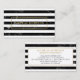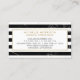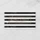 Este cartão de visita de designer apresenta um moderno, sobre tendência, motif de faixas alternadas de mármore preto e branco para uma estética chic. Seu nome ou nome comercial tem o estilo mínimo dentro de um fino quadro de ouro fino. Esta placa de lado duplo oferece muito espaço na parte traseira para suas informações de contato e detalhes. Criado para designers de interiores, decoradores, agentes de mudanças domésticas, boutiques de moda, arquitetos e profissionais criativos. Arte e design © 1201AM Design Studio | www.1201am.com