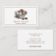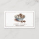 Um cartão de visita de uma empresa de restauração com uma tigela pintada de chocolates, uma bonito borda, e uma fonte decorativa única e colorida de cacau para o seu nome comercial.