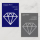 Um modelo de cartão de negócios com uma joia atraente ou um motif de diamante na frente. Nome da empresa, tipo de negócio e endereço na frente com nome, cargo, telefone, web e endereços de e-mail no verso, com um layout semelhante em um fundo de cinza com um motivo de diamante em uma cinza mais leve. Este cartão também pode ser mais personalizado.