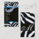 Design único elegante, elegante, colorido e colorido com diamantes e padrão de pele de zebra selvagem listrada em preto com uma pedra brilhante azul da safira.Você pode mover gemstone para personalizar com suas iniciais e seu próprio texto.Este cartão artístico e legal é perfeito para cabeleireiro, desenhista de fantasia, motista, maquiadores, figurantes, designers de roupas, proprietários de boutique, cosméticos, metólogos, perfumes, compradores pessoais, consultores de armários e outras profissões criativas.