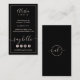 Um design cartão de visita elegante e sofisticado perfeito para uma grande variedade de negócios. Escrita de tendência Blush Pink e tipografia san serif criam um olhar chic e elegante contra um fundo preto rico com uma simples estrutura rosa-pincelada. As informações de contato são exibidas em um cor-de-rosa pincelado suave. "Diga alô" é exibido acima de quatro ícones de mídia social (Pinterest, Twitter, Instagram e Facebook) e personalize com seu nome de usuário/identificador de mídia social. O verso apresenta um na moda e um design de monograma de script. Esta bela cartão de visita combina pintas macios e preto rico para criar uma combinação sofisticada e chica perfeita para planejadores de casamento, planejadores de eventos, spas, estilistas, maquiadores, indústria de beleza, moda, designers de interiores e muito mais.