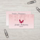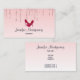 Um design moderno e moderno em um cartão de visita. O fundo tem uma imagem de brilho brilhante, rosa, gotejando, (faux) brilhando ao longo do topo. O resto do fundo é um delicado gradiente cor-de-rosa pastel. Um par de estiletes cor-de-rosa alto acima do seu texto.