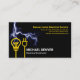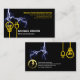 Um cobrir totalmente preto é acentuado por um par de lâmpadas amarelas e um motor de ficha de alimentação que é carregado por um raio azul acima. Este motivo abriga seu nome prestigiado e cargo. Na parte superior, veja o nome da sua empresa e os detalhes de contato em amarelo. As letras aqui estão em amarelo.
