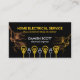 No verso, um tema design semelhante é usado com raios azuis. No topo está uma casa de ouro falso e o logotipo de lâmpada que você pode usar, seguido do seu nome de prestígio, detalhes de contato e uma opção de slogan para divulgar seus serviços.