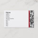 Cartão de visita elegante impressionante com o impressão preto e branco afiado do damasco limitado por dianteiro e traseiro vermelhos escuro.
