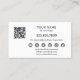 Um design retro com uma mulher escrevendo em um notebook com um café e seu telefone. No verso há um modelo de código QR facilmente personalizável, assim como vários ícones de mídia social. Você pode excluir aqueles de que não precisa. Excelente para um blogueiro ou escritor.