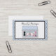 Cartão de visita de varejo da forma com montra e monograma. Design no tema azul e preto das bolinhas. Apropriado para a indústria da moda, as lojas, as lojas da segunda mão e os boutiques.