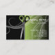 Verde e preto scissor o design com redemoinhos do cabelo no fundo. Este cartão de visita elegante e original é apropriado para um negócio do cabeleireiro ou um cabeleireiro. Sinta livre contactar-me se você precisa a ajuda que personaliza seu cartão de visita ou se você gostaria de pedir um design que melhore o terno seu negócio.