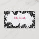 Cartão de visita preto e branco apropriado para alguma profissão. a cor damasco das características de design no preto ajustou-se contra um fundo no branco. Todo o texto é customizável. a cor do fundo pode ser mudada a o que quer que você deseja.