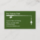 O tema de pesca cartão de visita design num formato simples com uma vareta de pesca que tem uma isca de pesca e um bob e um texto que você pode personalizar online. Concebidos para um clube de pesca, fretamento de pesca, capitão de navio ou isco e compro de combate.