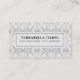 Um cartão de visita residencial e profissional de pavimentos, com um padrão de chão ou azulejo de parede, em forma de diamante geométrico, de cor branca.