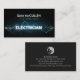 O cartão de visita elétrico contratado eletricista apresenta a palavra eletricista sobre os parafusos elétricos. Perfeito para elétrico, elétrico, contratante elétrico, eletricidade, contratante, trabalhador, trabalhador, reparação de casas, reparação de casas.