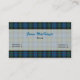 Cartão de visita à moda da xadrez feito no teste padrão tradicional azul, vermelho, e verde colorido do tartan de MacKenzie. A parte dianteira do cartão tem uma banda semi transparente do branco, através do meio do cartão, com texto azul e preto feito sob encomenda. A parte traseira do cartão é feita no branco, com uma tira da xadrez na parte inferior, e do texto do preto na parcela branca. Personalize todo o texto para serir suas necessidades. Cartão de visita de vista considerável e profissional.