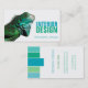 Design interior, cartão de visita de designer interior com camaleão. Coloridos - à sombra do verde e da turquesa - dois modelo laterais.