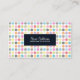 Este design simples apresenta um pano de fundo de bolinhas muito alegres e coloridas organizadas em uma grade. Seu nome e título aparecem em um painel de texto preto com letras fáceis de ler. Este design é especialmente adequado para temas design, artísticos ou informais. Personalize este cartão imediatamente com seu nome e detalhes.