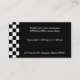 Engraçado, divertido e retrógrado Cartão de visita do Diner com um cachorro-quente e hambúrguer na frente sobre um quadro de xadrez preto e branco. O fundo é preto. ©2010 Designs Chocolatte | E. Thompson TOTALMENTE PERSONALIZÁVEL POR VOCÊ!
