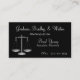 O cartão de visita do advogado do negro como o azeviche com gráficos, das escalas de justiça, no tom de prata, e o texto no branco e na luz - cinza. O texto é inteiramente customizável no estilo, no tamanho e na cor.
