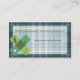 Cartão de visita colorido do golfe feito em uma xadrez azul e verde, com clipart do golfe no canto da parte inferior esquerda. Personalize a parte dianteira e a parte traseira deste cartão mudando o texto, na cor, tamanho, estilo, adiciona caixas de texto adicional ou remove as áreas de texto. Tenha o divertimento personalizar este grande cartão de visita de vista, para fazer-lhe seus próprios. A versão corrigida com o contato numera pronto para personalizar, mostrado abaixo.