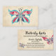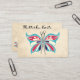 Entregue agulhas de confecção de malhas tiradas com as asas modernas da borboleta e fundo envelhecido no este cartões de visitas para knitters, fios homespun e outros artesanatos do fio.