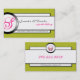 Promova seu negócio da padaria do cupcake do café com estes verde limão bonito, lunático, rosa, pontos preto e branco do monograma e cartão de visita bonitos, lunáticos do cupcake. Este cartão de visita caracteriza um fundo brilhante dos pontos com um quadro do círculo com uma letra do monograma para dentro. O design mergulhou os retângulos que indicam sua informação do negócio. Na parte traseira é um cupcake bonito indicado em um quadro circular. Este cartão de visita corajoso, moderno, e à moda é igualmente um grande fósforo para fornecedores, cafés, padarias, negócios do cupcake, planejadores do partido, padeiros, cozinheiros chefe, negócio que fornecem o produtos de forno aos varejistas, planejadores wedding, designer de interiores, desenhadores de moda, termas, salões de beleza, técnicos do prego, manicuros, estheticians, beauticians, lojas de roupa de varejo, lojas de jóia, e mais. O design do Pam ©2011.
