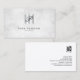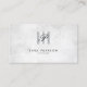 Este elegante cartão de visita profissional apresenta um elegante fundo de textura de mármore. Sua letra de monograma aparece em uma letra de rico em negrito em uma sutil matiz de cinza escura dentro de um quadrado com textura prateada. Seu nome e título aparecem na parte inferior do meio, abaixo da prata do monograma. Perfeito para temas profissionais, de administração, de gestão, profissionais, sofisticados, contemporâneos, minimalistas.