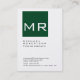 Cartão de visita do Monograma Verde da Floresta Ch
