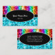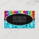 O cartão de visita com um design moderno que caracteriza as estrelas dispersadas sobre do "o olhar estilizado sequin" arco-íris-coloriu listras em um fundo azul, com o texto escrito no branco em uma forma oval preta. Um design customizável para que você personalize com seus próprios texto, imagens e ideias. Note por favor que esta é uma imagem digital impressa da arte e não contem o brilho real ou os sequins