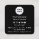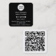 Cartão de visita quadrado genérico com logotipo personalizado e campos de texto. Cor de fundo personalizada. Código QR personalizado no verso.