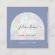 Elevem a sua marca com nossos cartões de visitas quadrados impressionantes com um fundo holográfico cativante e um design de arco elegante. Perfeito para profissionais de beleza, como estilistas de unhas, maquiadores e estilistas de cabelo, esta modelo permite que você mostre suas informações de contato, site e mídia social em estilo. Faça uma impressão duradoura e aumente sua clientela - peça a sua hoje!