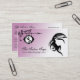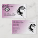 Um cartão de visita limpo original para algum cabeleireiro ou proprietário do salão de beleza. Design moderno com um fundo roxo e preto, caracterizando tesouras e um entalhe principal. Cada cabeleireiro quererá um destes imprimir seus clientes.