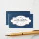 Esta modelo de um cartão do site de casamento apresenta um fundo com padrão de damascos azuis, dado que um velho e angustiado procura por uma sensação de safra. Em segundo plano está um ornamento com os nomes dos casais, o endereço do site do casamento e algumas informações sobre o que os convidados, amigos e vendedores encontrarão no site do casamento.