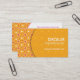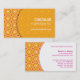 Uma grade de círculos concêntricos dourados da laranja, os cor-de-rosa e os brancos faz um teste padrão de apreensão neste cartão de visita que é certo obter a atenção. Um amarelo alaranjado, forma circular leve transparente guardara o nome da empresa e a preferência principal do contato. O reverso revela o teste padrão à esquerda para mostrar fora toda a informações de contacto contra o branco à direita. Uma maneira criativa de promover um marketing e um negócio das comunicações, uma consulta, designer de interiores ou alguma ocupação criativa. Disponível em cores alternativas com produtos de harmonização.