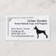 Um simples design preto e branco com uma silhueta de um Doberman com um padrão geométrico no canto.