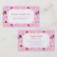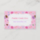 Um cartão de visita com um teste padrão doce e feminino dos doces com fundo cor-de-rosa. Uma variedade dos doces, dos pirulitos e dos chocolates. Melhor para os negócios que estão no negócio dos doces e o chocolate, tal como uma loja dos doces ou do chocolate, o boutique dos doces, os confeitos dos doces, o cozinheiro chefe do fazer dos doces e os negócios dos favoritos para festas dos doces. Personalize dentro do espaço branco disponível.