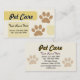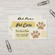Cartão de visita dos cuidados dos animais de