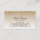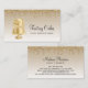 Cartão de visita para padeiros, padarias, bolos de casamento, cozinheiros de pastelaria e fornecedores de refeições. A frente apresenta o brilho dourado escorrendo sobre um fundo de ouro ombre, uma ilustração de um belo bolo de casamento de ornamentado com a coordenação do gelo dourado, e seu nome comercial em um roteiro de na moda. Ao contrário, adicione seu nome, título e informações de contato.