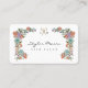 Belo e elegante cartão de visita para um negócio de cabeleireiro e salão. Nosso design apresenta nossa bela coroa floral de flores silvestres com tesouras de ouro, modernas e elegantes, colocadas no centro da coroa floral. Personalizado com seu nome comercial e monograma. O verso apresenta a coroa floral com informações de contato. Todas as ilustrações são obras de arte originais desenhadas à mão pela Moodthology.