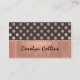 Cartão de visita à moda, com os gráficos do ouro cor-de-rosa e do teste padrão de bolinhas preto, na parte superior dianteira, com uma banda do olhar cor-de-rosa da folha de ouro através da parte inferior e de cobrir a parte traseira do cartão. Personalize o texto para serir suas necessidades do negócio. Um bonito está para fora o excelente do cartão para qualquer tipo da ocupação ou do negócio.