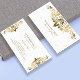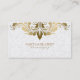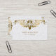Pincel branco elegante redemoinhos florais com tons dourados vintage com renda floral suave. Modelo de cartão de negócios totalmente personalizável de dois lados.