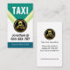 Cobrir apresenta um medalhão de design com o logotipo do taxista dourado no centro. Na parte superior, encontra-se o nome comercial "TAXI" junto aos dados de contato e uma legenda de slogan perto da base do cartão. No verso, num cobrir branco, o logotipo dourado está no topo, seguido do seu nome prestigioso, dos seus dados de contato e de uma legenda de slogan que você pode mudar. Uma placa de excelente para drivers de táxi e motoristas a serem usados. #taxi #taxiservice #taxiride #taxidriver #driver #privatedriver #chauffeur #limo #designaddriver #rideshare #zazzlemade