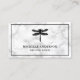 Cartão de visita elegante com uma bela ilustração da libélula num fundo branco de mármore. Adicione seu nome e detalhes de contato para fazer uma primeira impressão duradoura.