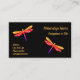 Adicione um design artístico a um cartão de visita profissional. Dragonfly Neon Wings Black Dourada Cartão de visita. Personalize com informações de ocupação/título, empresa e contato. Cria uma apresentação única. DICA: Torne o seu cartão de visita ainda mais memorável e anote um gancho de memória personalizado no seu cartão antes de o dar a alguém. Cartões de visitas tornam fácil para o pessoas se lembrar de você.