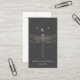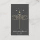Modern earring display card features gold celestial dragonfly with crescent moon illustration on dark gray background with white contemporary text on front, and gray text with customizable QR code for your website or social media on back.