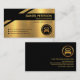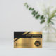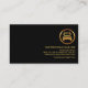 No canto superior estão o seu prestígio nome e cargo com uma legenda de slogan logo abaixo na camada dourada. Use esta legenda para divulgar seus serviços. Isso é seguido por um logotipo de caminhão em ouro que você pode usar. Os detalhes do contato estão localizados nos respectivos botões pretos, perto da base do cartão.