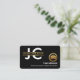 Um cobrir preto é acentuado por um cartaz com um quadro de borda dourada próximo à parte superior da placa. Esta peça de ouro contém seu nome de ouro prestigiado com suas iniciais de nome monograma atrás. No lado direito da placa está um logotipo falso de táxi dourado que você pode usar junto com o nome comercial "SERVIÇO TAXI", que você pode mudar para atender às suas necessidades. Os detalhes de contato podem ser encontrados logo abaixo do nome da empresa. No verso, o logotipo dourado está no topo, seguido do seu nome prestigioso, dos seus dados de contato e de uma legenda de slogan para divulgar a sua empresa. Uma placa profissional de excelente para drivers de táxi e motoristas de motorização.