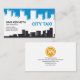 Um design criativo com um céu azul brilhante contra a construção de silhuetas. Na parede esquerda está o seu prestígio nome e cargo. Diretamente abaixo estão os detalhes do contato. Em direção ao muro certo está o slogan "city taxi" (táxi da cidade), mude-o para atender às suas necessidades comerciais.
