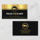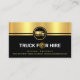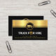 O cobrir apresenta um design em camadas preto e ouro. Interceptar isso no topo é um logotipo de caminhão dourado que você pode usar. Logo abaixo está a legenda "caminhão para aluguer", onde a letra O é substituída por um ícone de jante de pneu de ouro (a jante de pneu de ouro pode ser movida em qualquer lugar ao redor do cartão). Você pode mudar a legenda "caminhão de aluguer" para atender às suas necessidades de serviço. Seu nome prestigioso e os detalhes de contato estão localizados perto da base da placa.