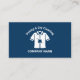 A blue business card for a dyeing and dry cleaning shop or service with an illustration of a shirt with a stain. Perfect for all activities of ironing, laundry, dry cleaning, launderette, laundry care, clothing washing, etc.
