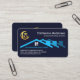Um cobrir azul apresenta um design de telhado azul que tem uma legenda de slogan "SUAS SOLUÇÕES DE ROOFING" que você pode mudar. No topo está um logotipo de telhado dourado, com letra C, que você pode usar com seu nome prestigiado e cargo à direita. Na base do cartão estão os dados de contato. No verso, no topo está o logotipo dourado seguido do nome comercial, da opção de slogan e dos contatos. Um cartão de excelente para as empresas de telhados e de construção. #telhado #empreiteiro do telhado #roofers #construção #homconstrução #construção #construção #construção #prédios #handyman #prédios #construtor #empreiteiro #empreiteiro
