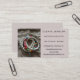 This business card features a handmade beaded bracelet to the left and to the right are the details of the business. On the back is a field for additional information. The text on both sides is editable so change the details as well as the font style, size and colour. The background colour on both sides can be changed, too.